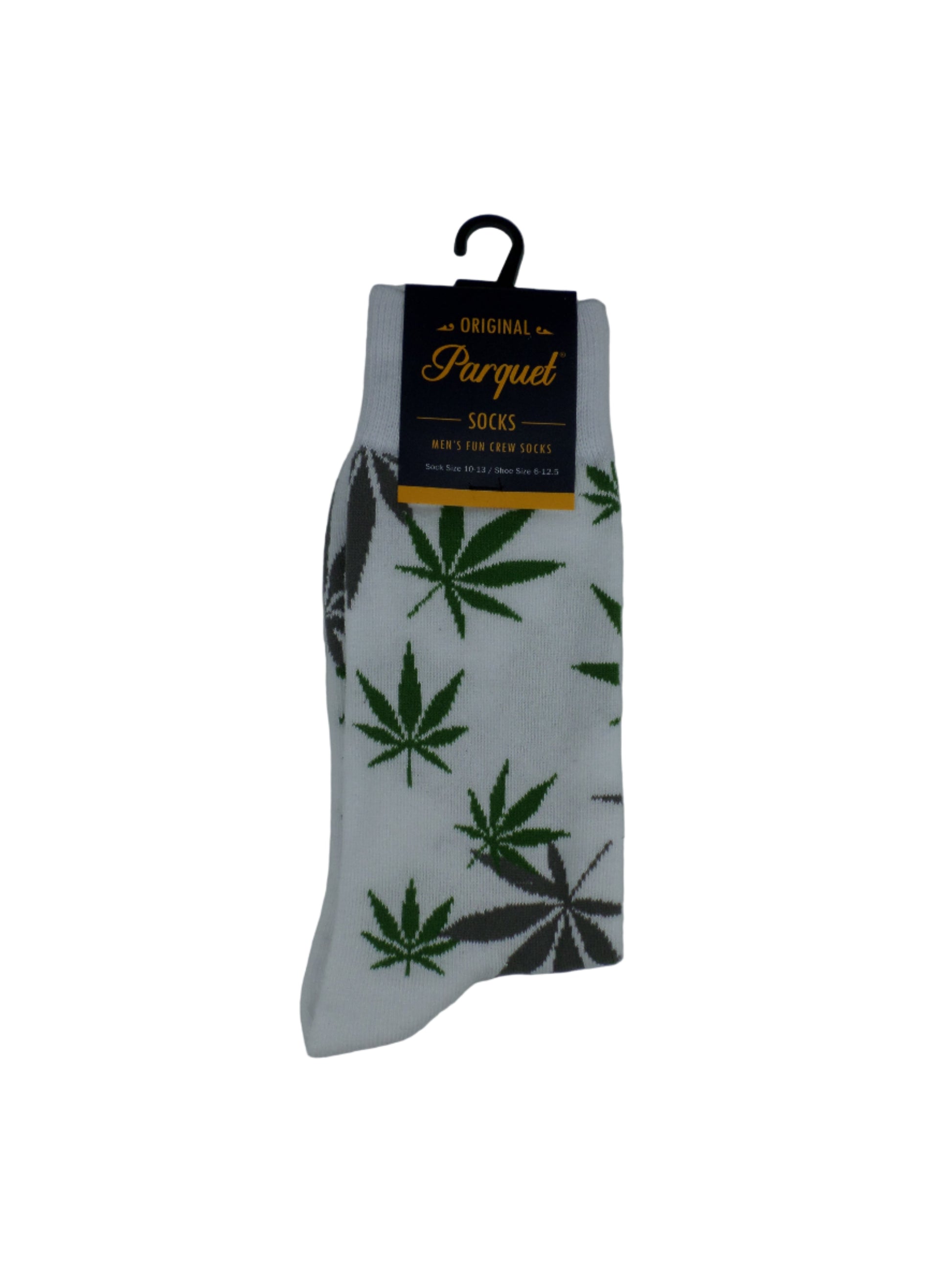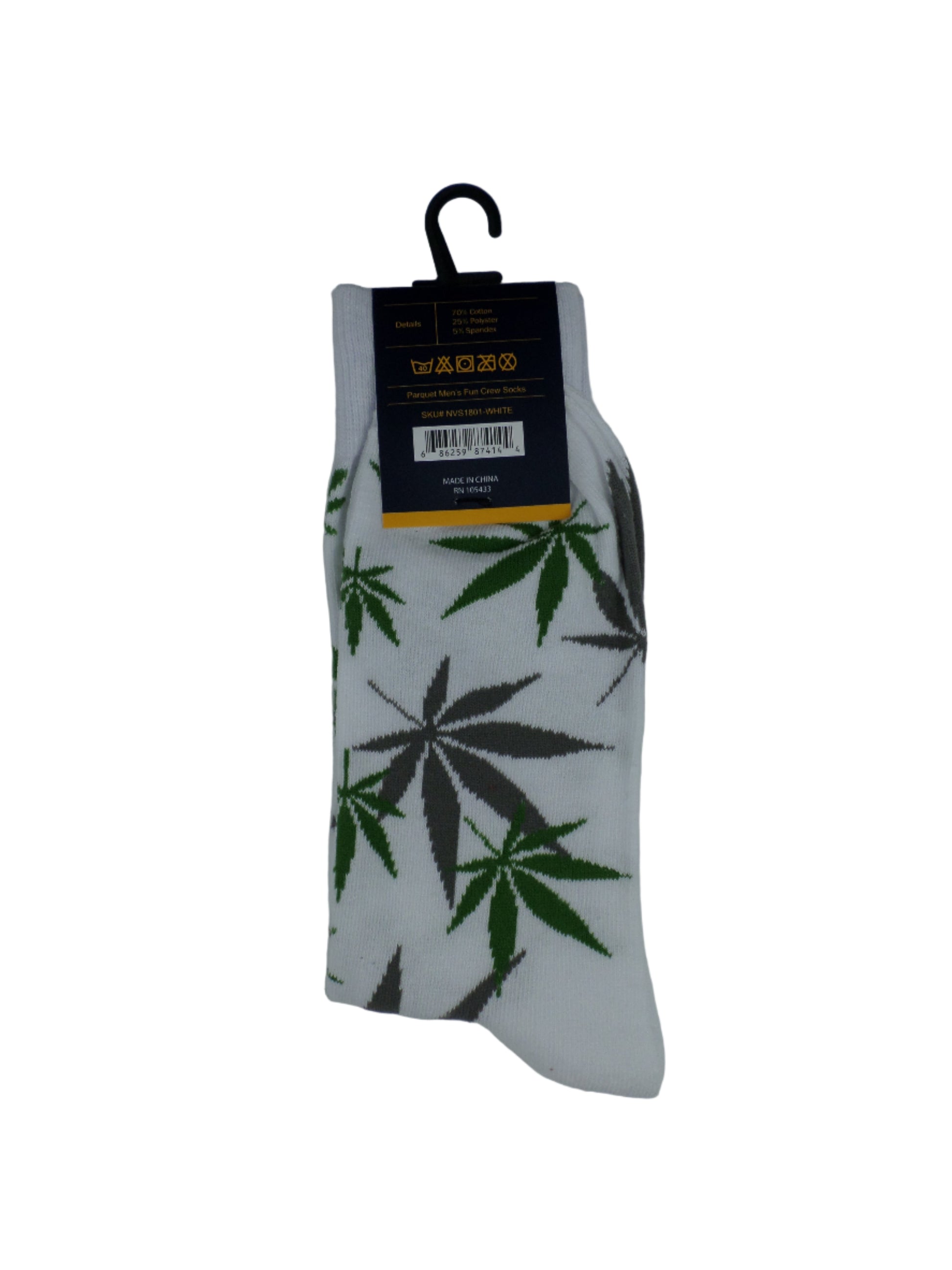 0-10055 Marijuana Leaf Crew Socks - Wht/Grn/Gry (Men's)