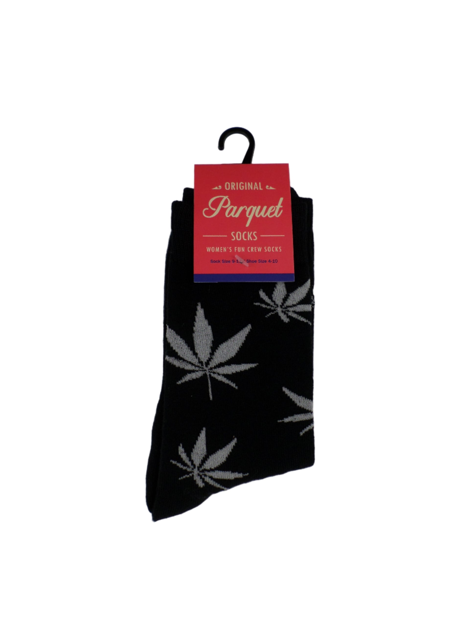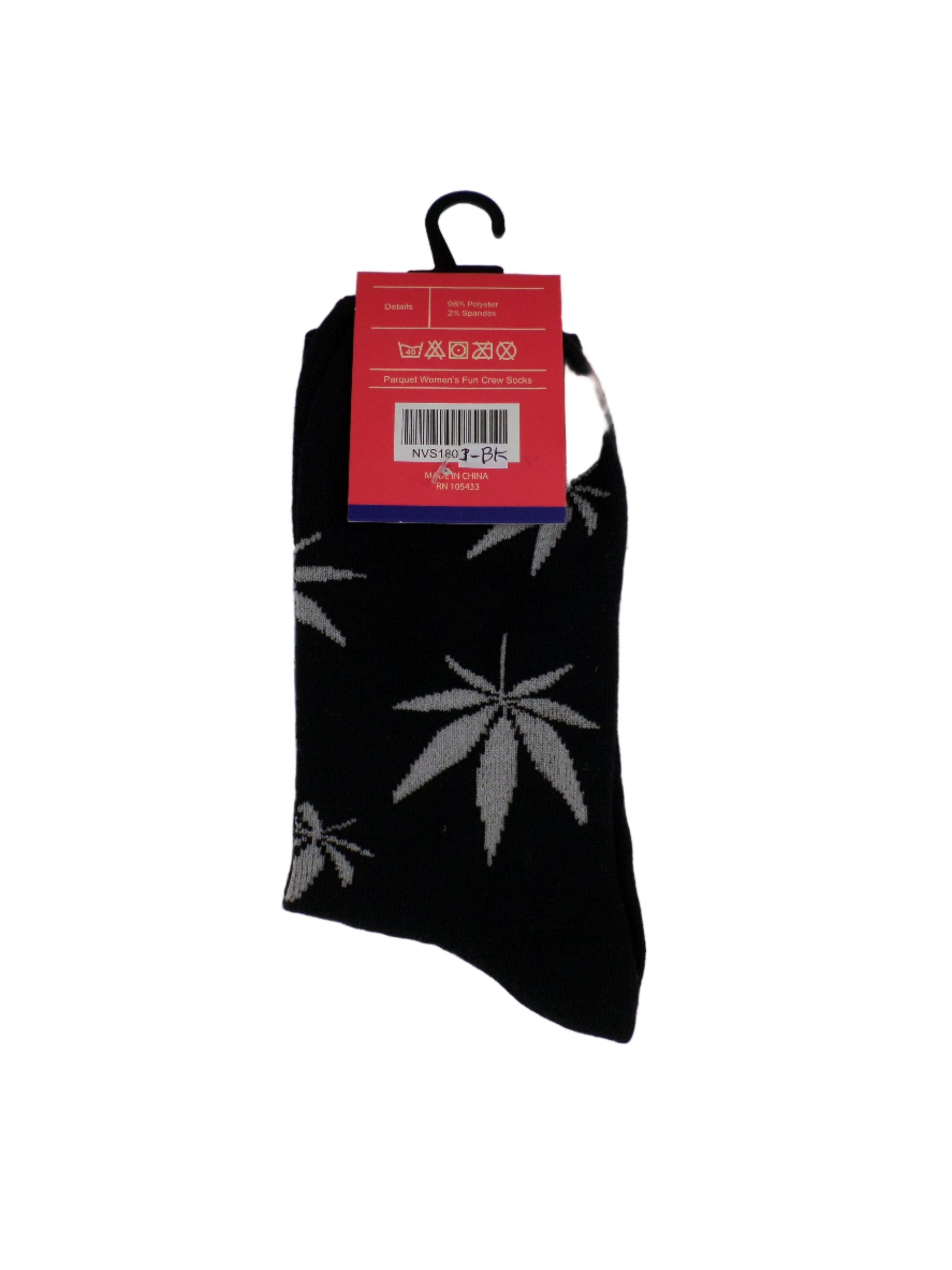 0-10057 Marijuana Leaf Crew Socks - Blk/Wht (Women's)
