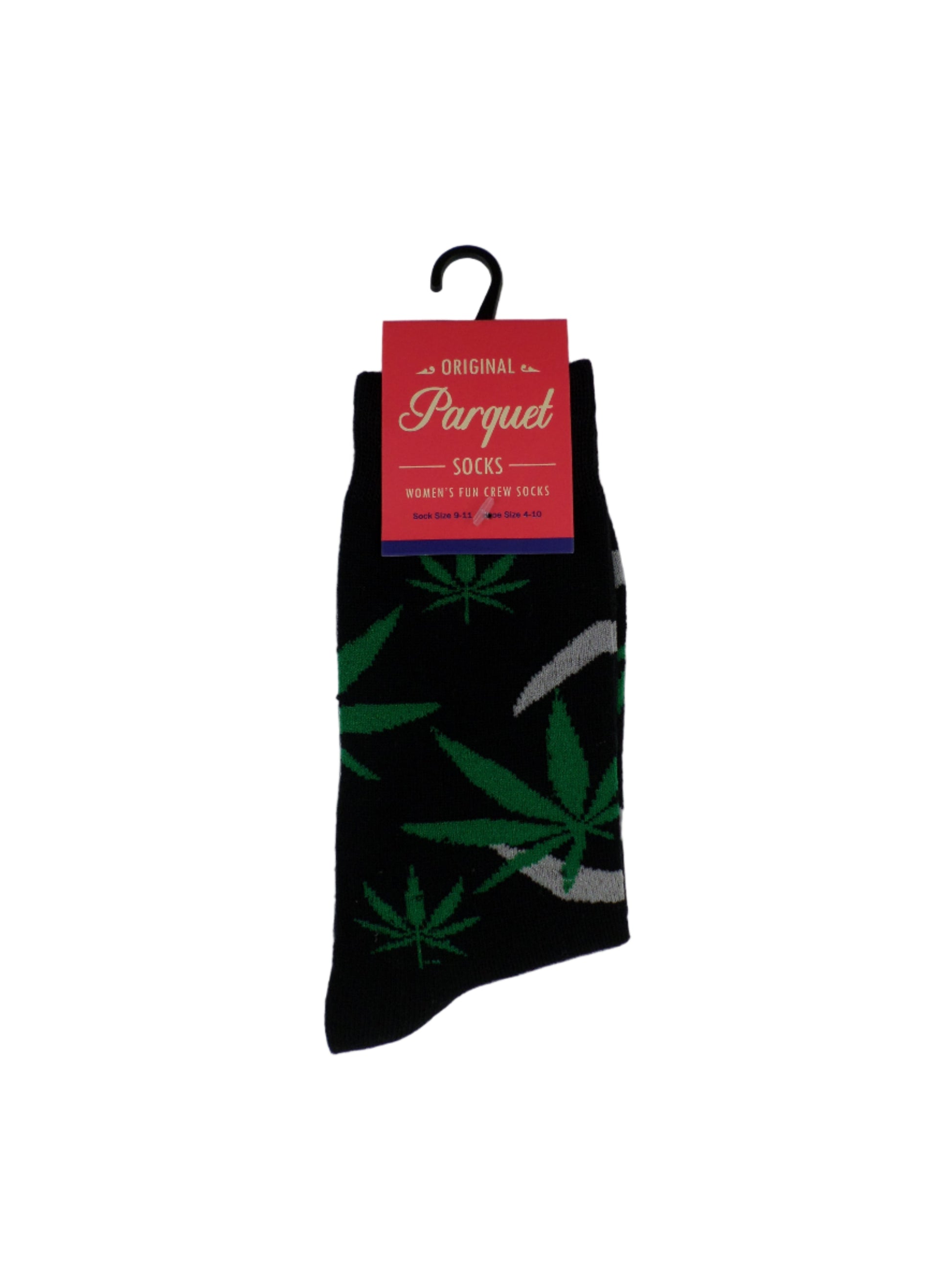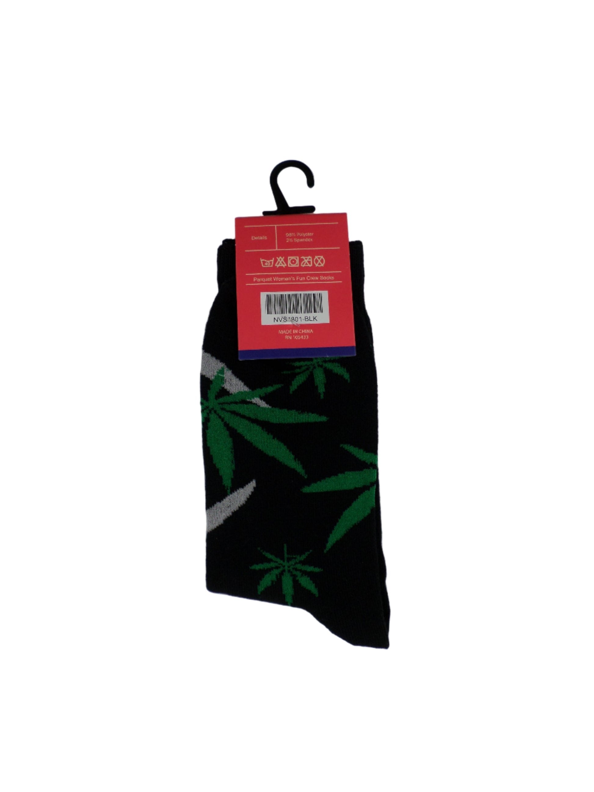 0-10058 Marijuana Leaf Crew Socks - Blk/Grn/Gry (Women's)