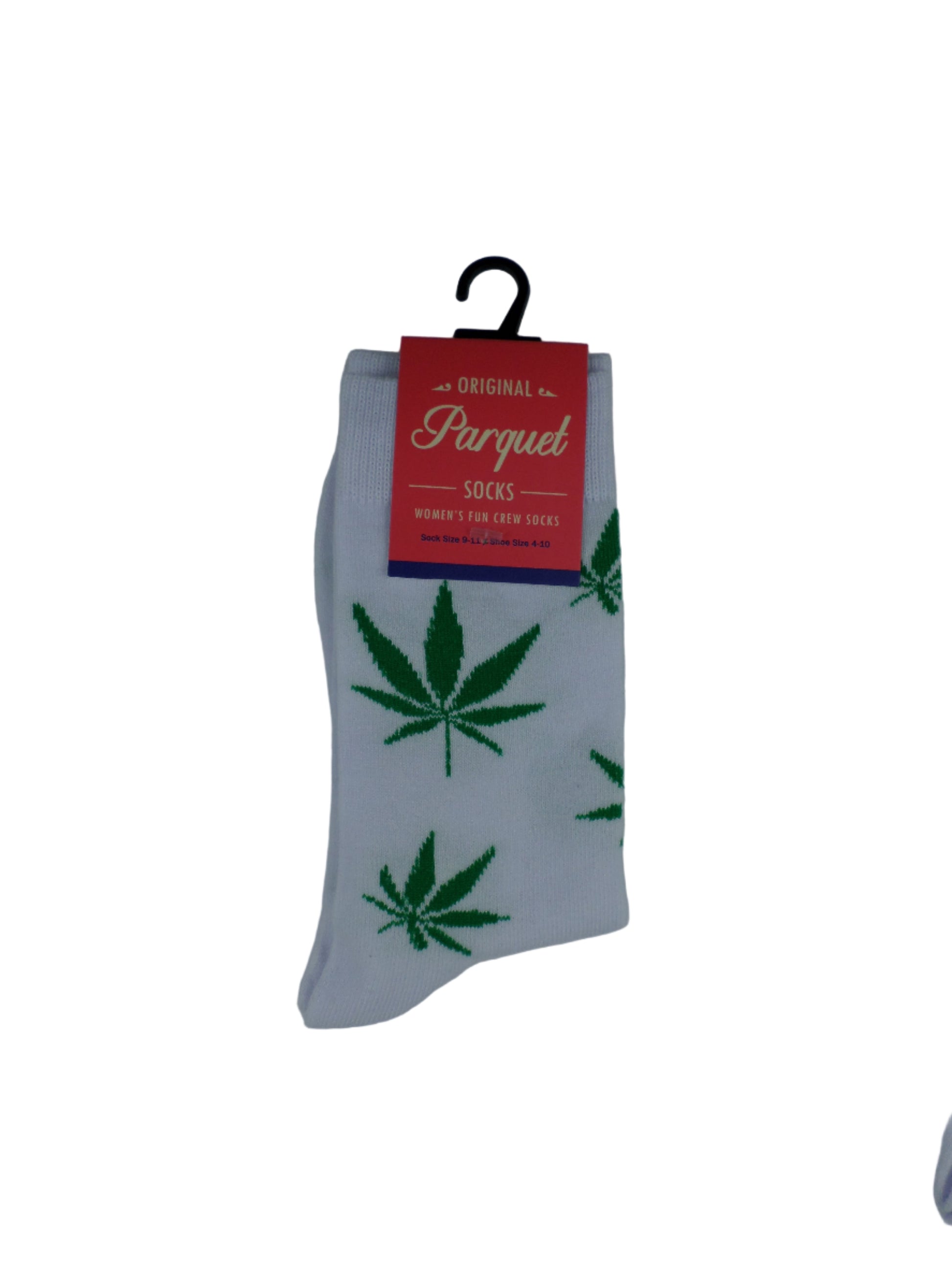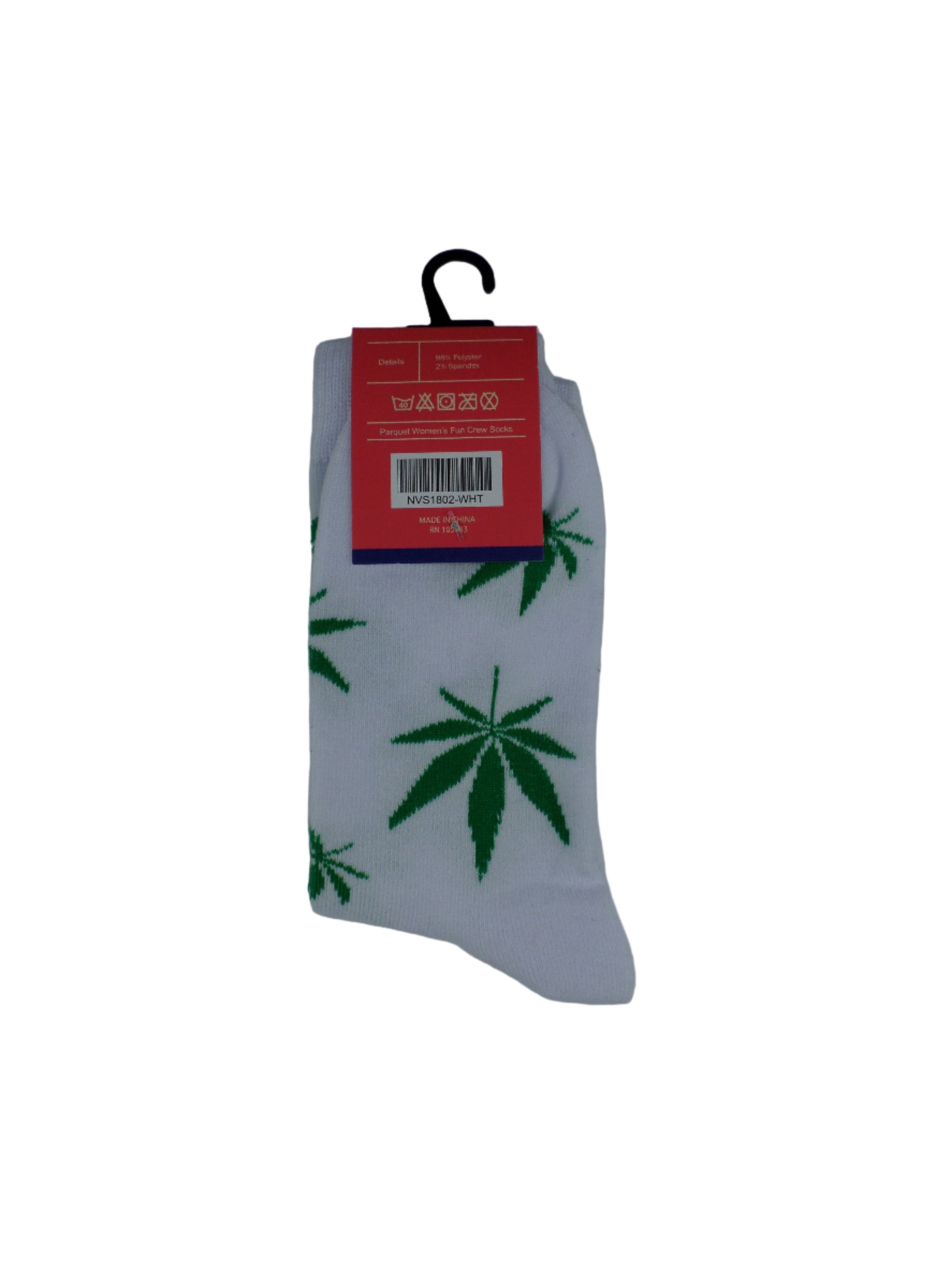 0-10059 Marijuana Leaf Crew Socks - Wht/Grn (Women's)