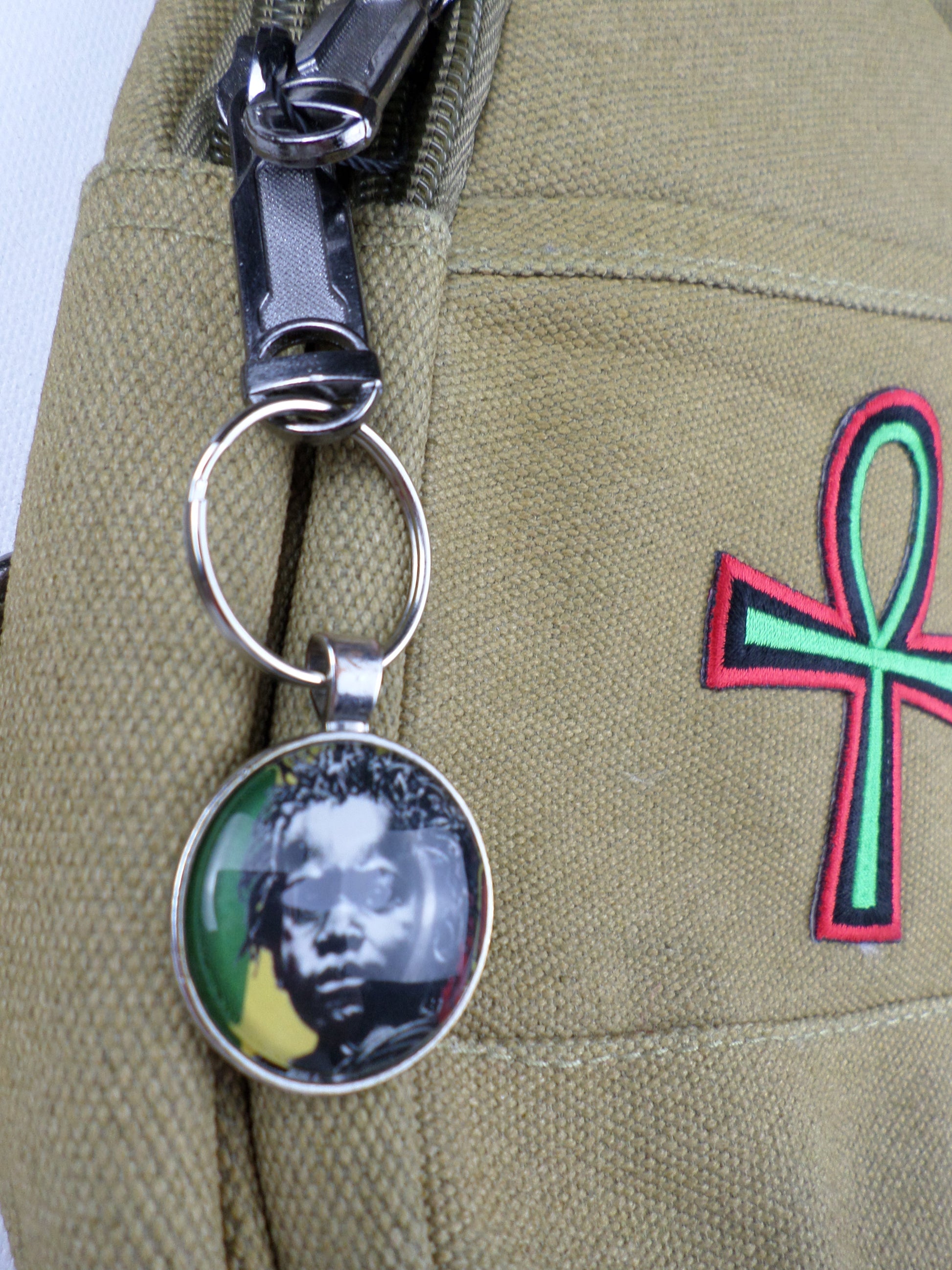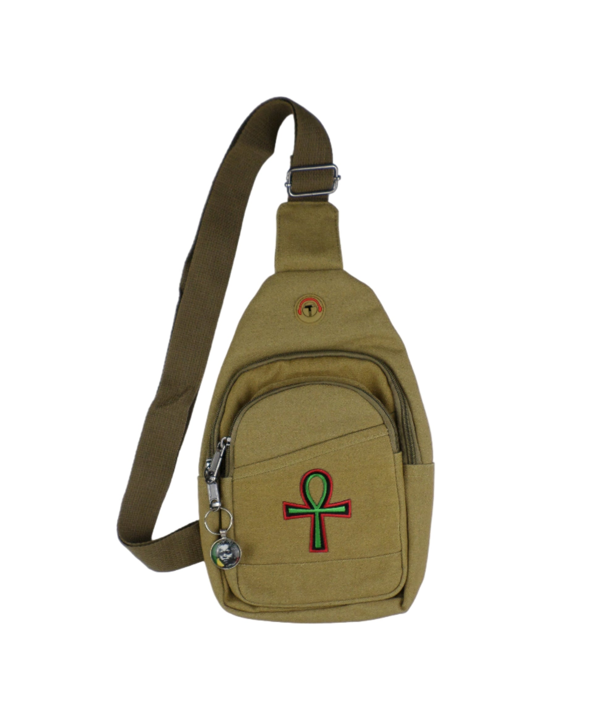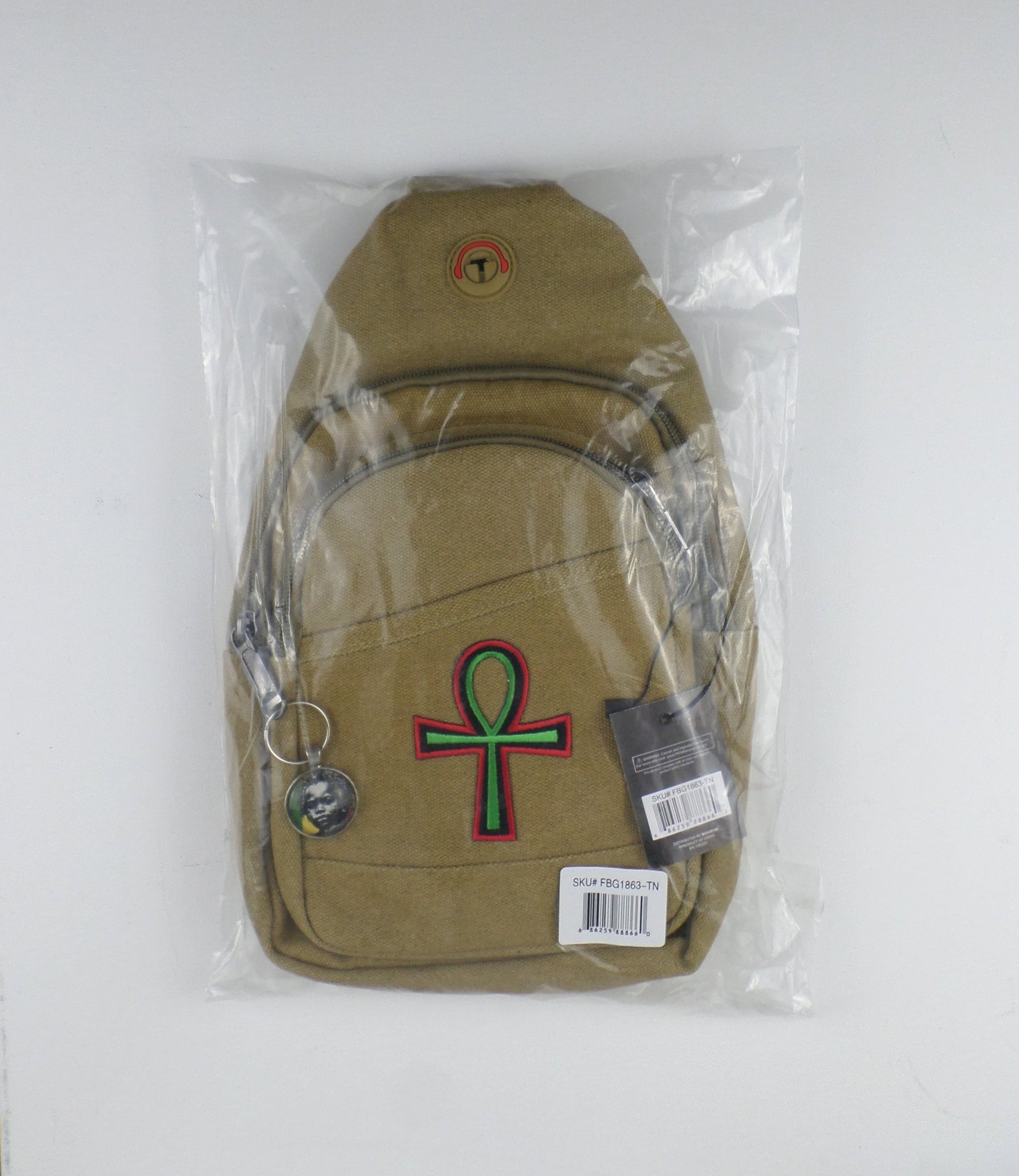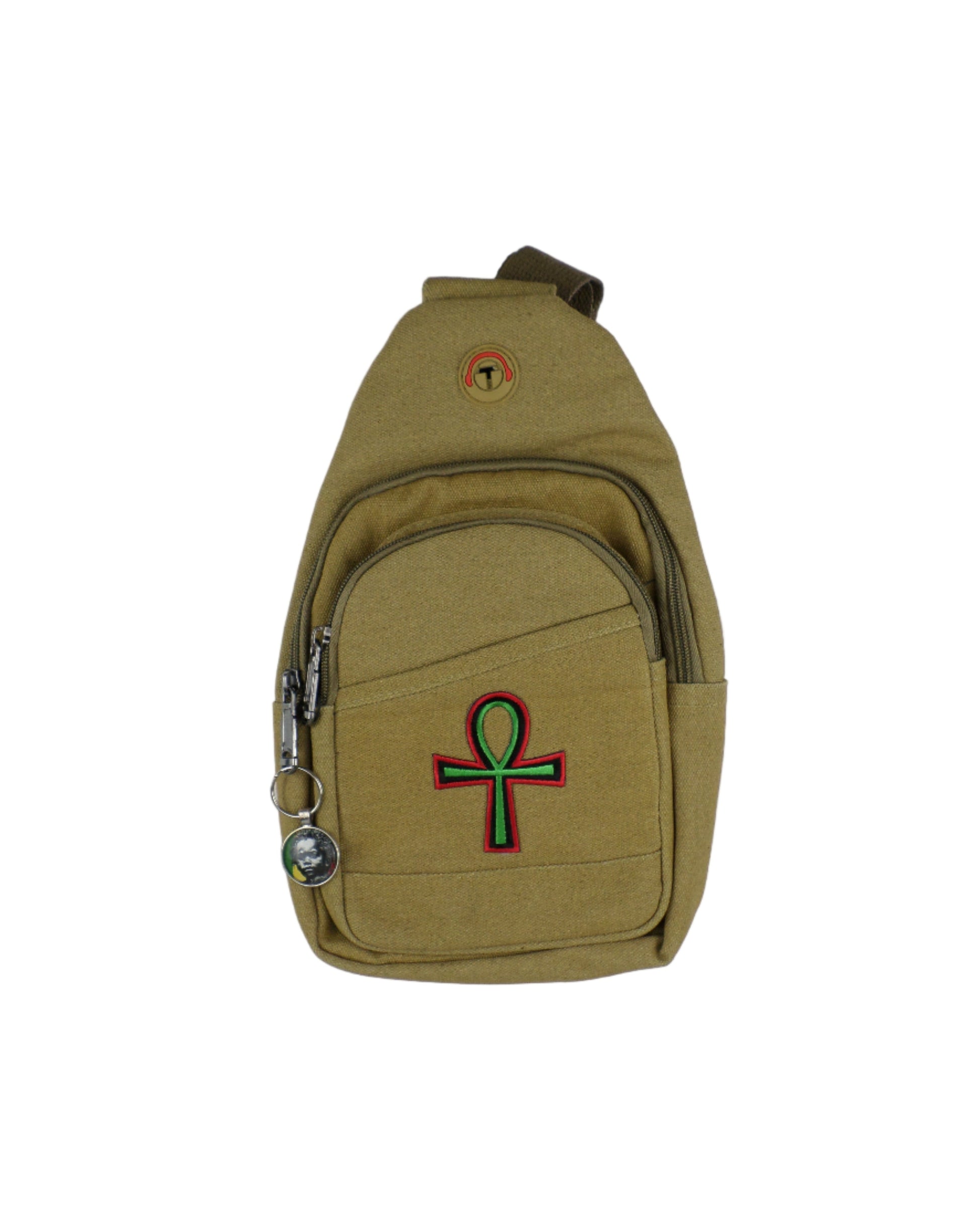 0-10043 Ankh (grn/blk/rd) - Crossbody bag with keychain charm (Tan)